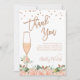 Cartões de agradecimentos de Chá de panela Floral de Pêssego Este chá de panela do que o seu cartão contém duas disposições florais de aquarela em tons de pêssego e um vidro de champanhe elegante alto numa textura falsa de ouro rosa e cor d'água cor de pêssego. O título figura também em dourado rosa falso e faz parte da imagem. Esse cartões de agradecimentos simples, mas elegante, está pronto para ser personalizado.