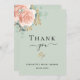 Um fundo verde sábio. Decorados com ouro-rosa, flores cor-de-rosa-pincel, flores (rosas) e folhas de eucalipto de cor aquosa verde, galhos, verde e borras de ouro falsas. Escrito escrito em grande mão e texto: Obrigado. Personalize e adicione sua nota de agradecimento e seu nome.