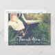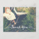 Este cartões de agradecimentos de fotos do casamento mostra uma grande foto do seu casamento com "Obrigado" em texto branco cursivo e sua própria mensagem no verso.
