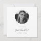 Este simples funeral e condolência, obrigado nota, é completamente personalizável. O texto de exemplo é preto, mas você pode alterar a cor do texto, a fonte e o tamanho do texto, se desejar. Incluímos uma linha fina em torno do texto frontal. Esta linha é cinza clara por padrão, mas você pode alterar sua cor ou removê-la se quiser uma aparência mais simples. Por favor, substitua a foto atrás. Para nossa foto de amostra, começamos com uma foto colorida e a tornamos preto e branco com o filtro preto e branco, que agora é a configuração padrão. Então sua foto colorida também aparecerá como preto e branco. Mas você pode facilmente desativar esse filtro se preferir manter sua foto colorida como ela é.