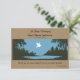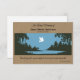 Um cartões de agradecimentos fúnebre rústico sobre fundo kraft com uma ilustração de uma pomba branca voando em uma cena serena com árvores e um corpo de água. Uma forma simples, mas elegante, de expressar gratidão a todos aqueles que ofereceram apoio durante um período difícil.