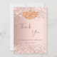 Um fundo rosa dourado, decorado com confete rosa dourado e uma máscara mascarada. Escrito escrito em grande mão e texto: Obrigado. Personalize e adicione sua nota de agradecimento e seu nome. Sua nota de agradecimento nas costas.