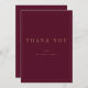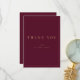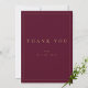 Envie uma doce nota de obrigados para presentes de casamento com estes cartões de agradecimento com texto de ouro moderno e simples. Personalize o texto personalizado com um monograma sans serif mínimo da noiva e do noivo. Nota, o esquema de burgundy e ouro pode ser modificado. Sinta-se à vontade para me enviar mensagens com qualquer pergunta relacionada a design - terei todo o prazer em ajudar!