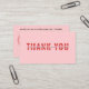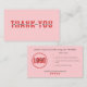 Faça uma impressão duradoura com este cartões de agradecimentos cor-de-rosa ousado, perfeito para as pequenas empresas que desejam mostrar apreço pelos seus clientes. A frente exibe uma mensagem "Obrigado" impressionante, enquanto a parte traseira é totalmente personalizável com o logotipo de sua empresa, links de mídia social e um código de desconto para encorajar pedidos repetidos. Este design moderno, atraente, adiciona um toque profissional à sua embalagem e ajuda a aumentar a lealdade do cliente. Ideal para compras de negócios, negócios on-line e empreendedores criativos que querem se conectar com seu público em estilo.