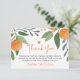 Celebre sua pequena beleza no caminho com esse cartões de agradecimentos de chá de fraldas encantador com o tema cítrico! Com laranjas aquáticas, verde e corações doces, esta design de "A Little Cutie Is On The Way" é perfeita para uma queda ou chá de fraldas neutro em relação ao gênero.