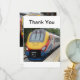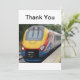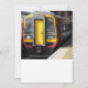 Seus amigos amantes do trem vão gostar de ter este cartão exibido em sua manta, com o operador de trem East Midlands Trains. O cartão tem um trem regional em Norwich e um trem interurbano em Corby.