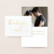 Um belo e elegante Cartões de agradecimentos com folha de alumínio na frente. Dentro, você pode adicionar sua foto de casamento. O dentro de sentimento é personalizável e há espaço para você adicionar seu próprio toque.