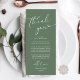 Compartilhe o amor e mostre seu apreço aos seus convidados, quando eles sentarem em seu assento e lerem esse obrigado romântico personalizado que você coloca no cartão. É uma maneira maravilhosa de acabar com a sua celebração especial de dia! Este cartão define o tom de um evento inesquecível. O cartões de agradecimentos apresenta o tema moderno da design, acrescentando um toque de elegância do eterno à sua celebração. Projetado por TeeshaDerrick