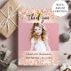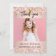 Um fundo rosa de gradiente dourado decorado com falso brilho, faíscas. Personalize e adicione sua foto e obrigado nota.