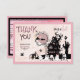 Envie um "obrigado" sincero aos seus convidados com este adorável cartão de chá de fraldas de dois lados. A frente apresenta uma encantadora cena de casa assombrada e uma mensagem divertida de "Obrigado", enquanto a parte de trás tem uma abóbora rosa e um gato preto amigável. É uma maneira perfeita de mostrar o seu apreço e é uma manutenção excelente do dia especial.