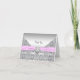 Fita de cetim rosa impressa Elegante com centro de diamante e cartões de agradecimentos de revestimento de losango prateado.