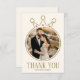 Celebre o seu casamento real com este cartões de agradecimentos elegante com um design da coroa ouro e uma foto do casal feliz. A design simples e moderna é perfeita para qualquer estilo de casamento e certamente impressiona seus convidados.