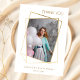 Frente: um falso quadro geométrico dourado. Personalize e adicione uma foto, seu nome e data. Back: seu bilhete de agradecimento e seu nome.
