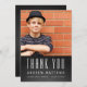 FORMANDO DE PAINEL | CARTÕES DE AGRADECIMENTOS DE GRADUAÇÃO COM FOTO DE FORMANDO COM TIPOGRAFIA DE RETRO BRANCA E PLANO DE SEGURANÇA PRETO PARA O SEU FILHO. Elke Clarke© Para MonogramaGallery em Zazzle. Uma design moderna divertida, ousada para um jovem que se formou em segundos graus ou formandos universitários. Outras cores e estilos disponíveis em nossa loja.