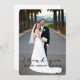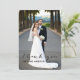 Estilo vertical. Obrigado simples do casamento da foto da folha de prova do roteiro da escrita você cartões. Projete por Elke que Clarke© para MonogramGallery imprimiu por Zazzle. Mande seu obrigado do casamento você mensagem como weds recentemente a seus amigos e a família que usa esta belamente, cartões de agradecimentos simples com as palavras "agradece-lhe" escrito em uma folha de prova preta do texto do roteiro da tipografia da escrita. Substitua a foto da amostra com seus próprias. Adicione seu obrigado pessoal você mensagem na parte traseira ou deixe o vazio e a mão escreve sua mensagem pessoalmente. Outro colore disponível.