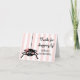 Uma aranha adorável com bochechas cor-de-rosa veste uma fita gira e gira amarrada em um arco e pendura do topo de um fundo estampado rosa e branco listrado. O CARTÕES DE AGRADECIMENTOS rosa e preto faz um lindo TEMA de Halloween ou CARTÕES DE AGRADECIMENTOS de festa de aniversário de aranha picante. Trabalho de arte © Chrissy H. Studios, LLC. Todos os Direitos Reservados.