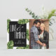 Estes cartões de agradecimentos tropicais do casamento da palmeira são perfeitos para um casamento de praia. Caracterizando o vintage, desenhos botânicos das folhas de palmeira e pias batismais inspiradas art deco, estes cartões de agradecimentos do casamento de praia podem ser personalizados em linha com seus detalhes e foto. Tem um vazio para trás para que o seu personalize com sua mensagem escrita mão.