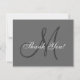 O vazio monogrammed elegante das cinzas e do branco agradece-lhe cartão para casamentos, aniversários ou artigos de papelaria personalizados diários. Design original por Elke Clarke©. Disponível em www.zazzle.om/monogramgallery. Use os campos do modelo para sua conveniência ou seleto edite o menu para personalizar com seus inicial do sobrenome e nomes de cores dos noivos e do casamento e para ajustar o afastamento do texto.