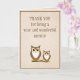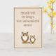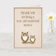 Esta sábia coruja é perfeita para o seu mentor que o ajudou a crescer. Excelente para professores, treinadores, supervisores e muito mais. Opção para editar o texto deste cartão para um título/função/nome específico e adicionar sua mensagem de dentro. As corujas bonitinhas aparecem na dentro do cartão, assim como na frente.