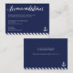Casamentos náuticos com cartões de visitas com riscas marinhos azuis e brancas, âncora branca e texto branco personalizado impresso em fundo azul marinho