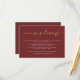 Estes Cartões de Alojamento de Típicos e Borgonhetas de Borgonha Rico irão estabelecer o palco para uma experiência elegante de casamento. A folha de ouro falsa para a palavra "acomodações" irá combinar-se bem com muitas cores de fundo diferentes, se você quiser personalizar.