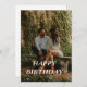 Feliz aniversário | Cartão com fotos de Script Moderno Belo Cartão de Saudação de Fotografia com um simples, moderno e minimalista banner de citação "Feliz Aniversário" em um fundo de cobertura semitransparente. Este cartão versátil pode ser personalizado com a sua própria fotografia, nome e data de aniversário para fazer um cartão verdadeiramente único e personalizado para o seu ente querido. A mensagem de dentro "Desejando-lhe um aniversário maravilhoso!" também pode ser facilmente atualizada com a sua própria mensagem. Eles estão sentados em um longo campo de grama. Esta imagem foi concebida como um marcador de posição para ser substituída pela sua fotografia ou imagem de família favorita. Parte da nossa impressionante coleção de fotos, com uma variedade de olhares e estilos, por favor, dê uma olhada! | Palavras-chave relacionadas: família, esposa, mãe, amor, pai,