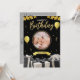 Frente de Cartão de Aniversário para Crianças: Um animador dinossauro segurando um cupcake. Dentro: "Espero que o seu dia seja um ácaro! Tenha o melhor aniversário de todos!"