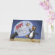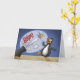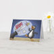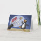 Um cartão de aniversário de cartoon engraçado, mostrando um pinguim fazendo o seu melhor para pegar um pedaço de bolo de aniversário de um canhão. A dentro desta carta diz simplesmente "Espero que o teu aniversário seja um Blast!"
