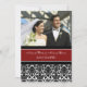 Cartões com fotos de anúncios eloquentes em cor damasco floral elegante vermelha, preta e branca, totalmente personalizável com seus nomes, fotos de casamento e detalhes de casamento, a maneira perfeita de anunciar que você fugiu para amigos e família. Disponível em uma grande variedade de produtos de casamento correspondentes.