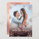 Cartões de Anúncio de Gravidez de Natal. Esperando pais! O moderno falso rosa dourado carta escrita com letra tipografia "mais alegre" para compartilhar suas boas notícias com a família e os amigos na temporada de festas. Apresentar uma moldura de floco de neve com brilho rosa dourado e à volta de uma pequena moldura de configuração de brilho dourado. No fundo da folha de rosa dourada falso. Você pode personalizar o design substituindo o texto do exemplo e a foto vertical. #3349 Se precisar de ajuda ou itens correspondentes, entre em contato comigo!