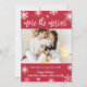 Cartões de Anúncio de Gravidez de Natal. Esperando pais! O moderno cartão de script "mais o melhor" escrito por tipografia branca para compartilhar suas boas notícias com a família e os amigos na temporada de festas. Possui belos flocos de neve brancos sobre fundo vermelho e no meio um modelo horizontal de foto. No fundo vermelho com flocos de neve brancos. Você pode personalizar o design substituindo o texto e a foto do exemplo. #3343 Se precisar de ajuda ou itens correspondentes, entre em contato comigo!