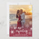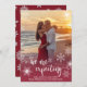 Cartões de Anúncio de Gravidez de Natal. Esperando pais! O moderno cartão de script "estamos esperando", escrito com letras brancas, para compartilhar suas boas notícias com a família e os amigos no feriado. No fundo vermelho-colorido com flocos de neve brancos. Você pode personalizar o design substituindo o texto do exemplo e a foto vertical. #3343 Se precisar de ajuda ou itens correspondentes, entre em contato comigo!