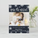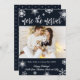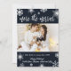 Cartões de Anúncio de Gravidez de Natal com Foto. Futuros pais! Tipografia moderna em branco com letras à mão "quanto mais, melhor" para compartilhar a feliz notícia com familiares e amigos durante a temporada de festas. Apresenta belos flocos de neve brancos em um fundo azul-marinho escuro e no centro um modelo de foto horizontal. No verso, fundo azul escuro com flocos de neve brancos. Você pode personalizar o design substituindo o texto e a foto de amostra. #3343 Se precisar de ajuda ou itens correspondentes, entre em contato comigo!