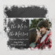 Cartões de Anúncio de Gravidez de Natal. Futuros pais! Tipografia moderna branca e garatujada em estilo manuscrito "quanto mais, melhor" para compartilhar a feliz notícia com familiares e amigos na temporada de festas. Apresenta uma moldura de floco de neve branca e no centro um coração branco com ramos de azevinho. Na parte de trás, quadro-negro com moldura branca nevada. Você pode personalizar o design substituindo o texto de exemplo e a foto vertical. É preferível ter uma foto de fundo mais escuro para que os flocos de neve fiquem visíveis. #3343 Se precisar de ajuda ou itens correspondentes, entre em contato comigo!