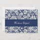 Cartões de anúncio em elegante azul escuro marinho e creme de cor damasco floral clássica branca, totalmente personalizável com seus nomes e detalhes de casamento, a maneira perfeita de anunciar sua eleição para amigos e familiares. Disponível em uma grande variedade de produtos de casamento correspondentes.