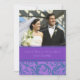 Cartão com fotos de anúncio da Elopement em elegantes espirais azuis e roxas escuras design, totalmente personalizável com seus nomes, fotos de casamento e detalhes de casamento, a maneira perfeita de anunciar que você fugiu para amigos e família. Disponível em uma grande variedade de produtos de casamento correspondentes.