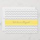 Cartões de lançamento em alegre e moderno amarelo-limão brilhante, cinza e branco, padrão chevron retro zigzags, totalmente personalizável com seus nomes e detalhes de casamento, a maneira perfeita de anunciar sua elopeia aos amigos e à família. Disponível em uma grande variedade de produtos de casamento correspondentes.