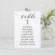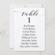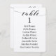 Escrita em caligrafia preta com fonte florida em papel branco crocante para cartões de mesa de assentos.