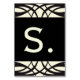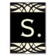 Cartões de Banner de Casamento de Arte Negra com Creme com letra que você pode personalizar. Elke Clarke© Disponível em www.zazzle.com/monogramgallery. Neste caso, faz parte de um conjunto que soletra o Sr. & Sra. Você deve preencher um cartão para cada letra que quiser e adicioná- lo ao seu carrinho. Um belo padrão de espirais pretas e uma letra elegante de script lhe dão flexibilidade para criar qualquer texto para uma faixa que você possa enfiar com fio para decorar qualquer área ou estação na sua recepção de casamento