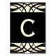 Cartões de Banner de Casamento de Arte Negra com Creme com letra que você pode personalizar. Elke Clarke© Disponível em www.zazzle.com/monogramgallery. Você deve preencher um cartão para cada carta que quiser e adicioná-lo ao seu carrinho. Um belo padrão de espirais pretas e uma letra elegante de script lhe dão flexibilidade para criar qualquer texto para uma faixa que você possa enfiar com fio para decorar qualquer área ou estação na sua recepção de casamento
