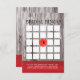 Cartões de Jogo de Bingo de Chá de Noiva Flor Vermelha e Madeira Flutuante Rústicos.