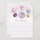 Estes cartões de cápsula de tempo adoráveis são uma atividade de festa de aniversário divertida que se torna um eterno tesouro. Basta exibir as cartas em uma mesa para que os convidados possam escrever suas previsões para o futuro, desejos ou qualquer mensagem que gostem. Os cartões de cápsulas serão abertos no 18º aniversário do seu filho, ou em qualquer ano que quiser. A design apresenta um astronauta, um foguete, planetas e fundo estelar.