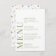 Elevem a vossa celebração clássica de casamento com um cartão de cardápio simples e requintado. Mostrando um padrão delicado de flores silvestres coloridas, este design refinado é melhorado por um toque personalizado — a noiva e os nomes de noivos no verso, adicionando um elemento marcante e marcante ao seu dia especial.