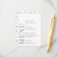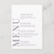 Elevem o fascínio do seu romântico caso de casamento rústico com um cartão de menu sofisticado e polido. Incorporado com um padrão intrincado com flores de lavanda púrpura, essa bela design é potencializada pela personalização, mostrando os nomes da noiva e do noivo no verso.