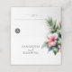 Estes cartões de casamento com opção de refeição apresentam flores de hibisco de cor d'água em tons de rosa. Use os campos de modelo para inserir os nomes da noiva e do noivo e a escolha inicial da refeição: v) vegan, b) carne de bovino, c) frango e gf) sem glúten. O espaço é fornecido para os nomes dos convidados e o número da tabela. A placa abre para revelar um padrão de ornamentado azul. Para ver mais cartas de núpcias visite www.zazzle.com/dotellabelle Arte exclusiva e design ~ Diga uma Belle no Zazzle.