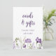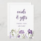 Sinal de Cartões & Presentes: Este sinal de cartões & presentes de flores silvestres roxas boho é 5x7 e perfeito para colocar na mesa de cartões & presentes do seu casamento.
