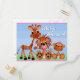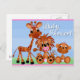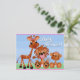 Cartões de saudação e convite para chás de fraldas com design azul e rosa com animais de zoológico incluindo macaco, leão e girafa.