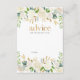 Reúna conselhos para a mãe estar no seu chá de fraldas com estes cartões de conselhos de chá de fraldas, que neutralizam o gênero, que fazem lindas manobras para a mãe ser. Bonito flores brancas com folhas verdes e douradas decoram este design. © Mini Moi Impressões