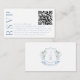 Descubra o charme dos nossos cartões de resposta de casamento clássicos, destacando um brasão inspirado em aquarela vintage decorado com flores azuis e brancas e monograma dos noivos no topo. Eleve a sua experiência de RSVP com a conveniência adicional de um código QR, proporcionando acesso rápido aos detalhes do casamento e opções de resposta. A sua participação perfeita e elegante começa aqui.