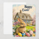 Felz pascoa com esses animais bonitos como coelhinho de Páscoa ou pintinho de bebê. Junte-se à caçada de ovos de Páscoa em primavera com cores vibrantes e alegria, doces e uma fantasia floral vintage. Coelho bonito com flores. Felz pascoa.